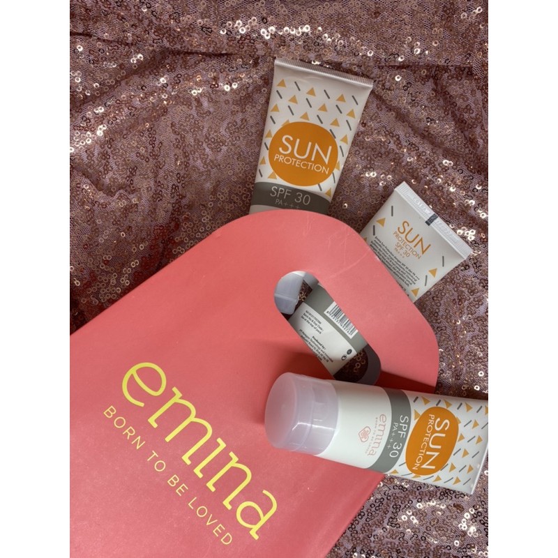 Sunscreen emina memiliki tekstur ringan membantu melindungi kulit anda dari sinar uv di hari yang aktif diperkaya dengan aloe vera extract.